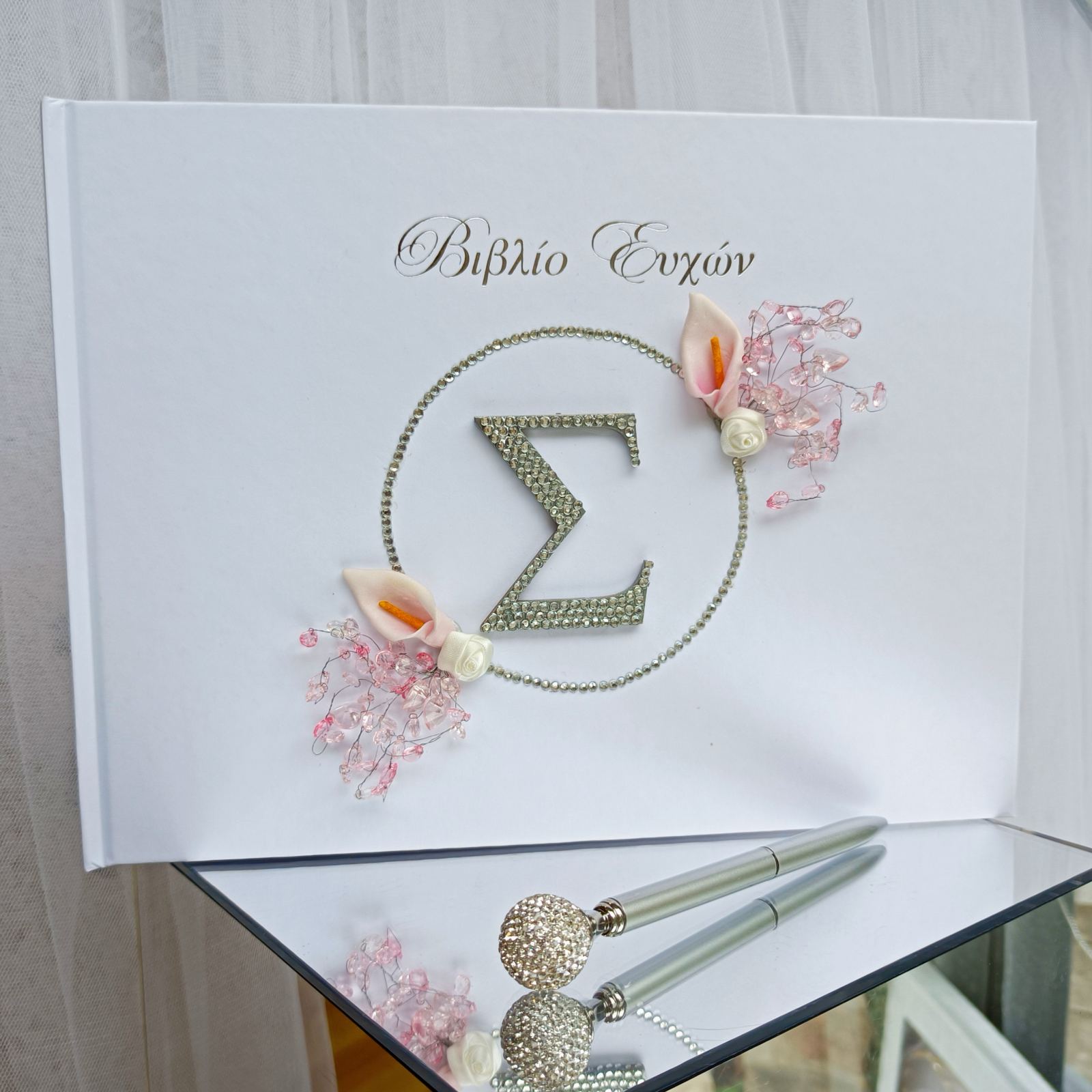 Βιβλίο ευχών βάπτισης με μονόγραμμα και strass