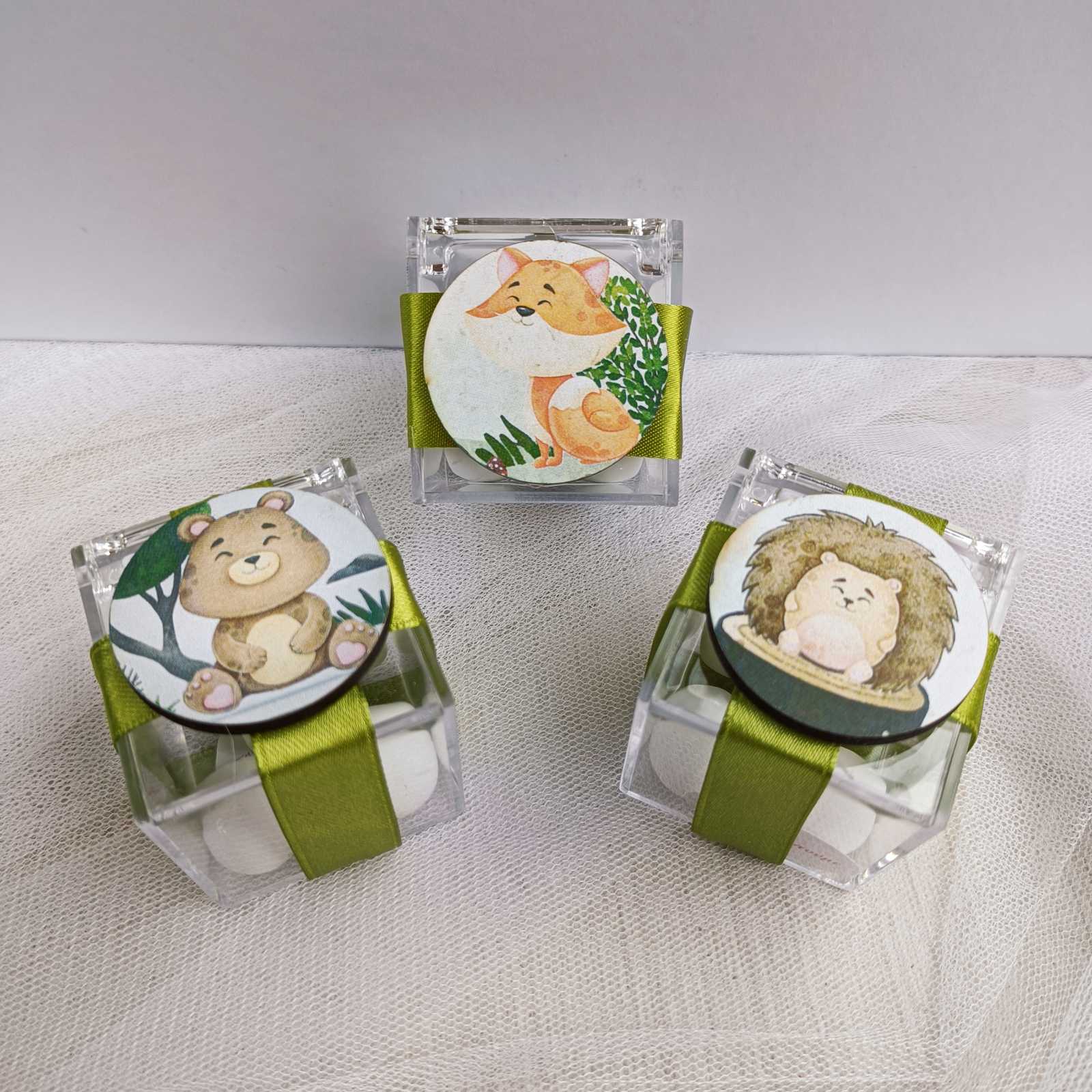 Μπομπονιέρα βάπτισης κουτί plexiglass με ζωάκια δάσους