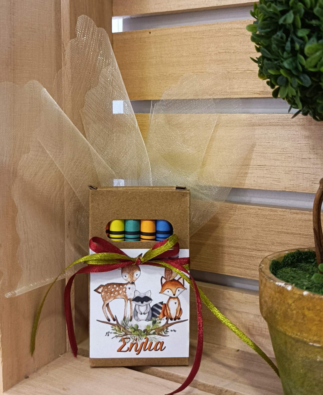 Μπομπονιέρα βάπτισης κηρομπογιές με θέμα της επιλογής σας και αναφορά ονόματος που θα εντυπωσιάσει τους μικρούς καλεσμένους σας!