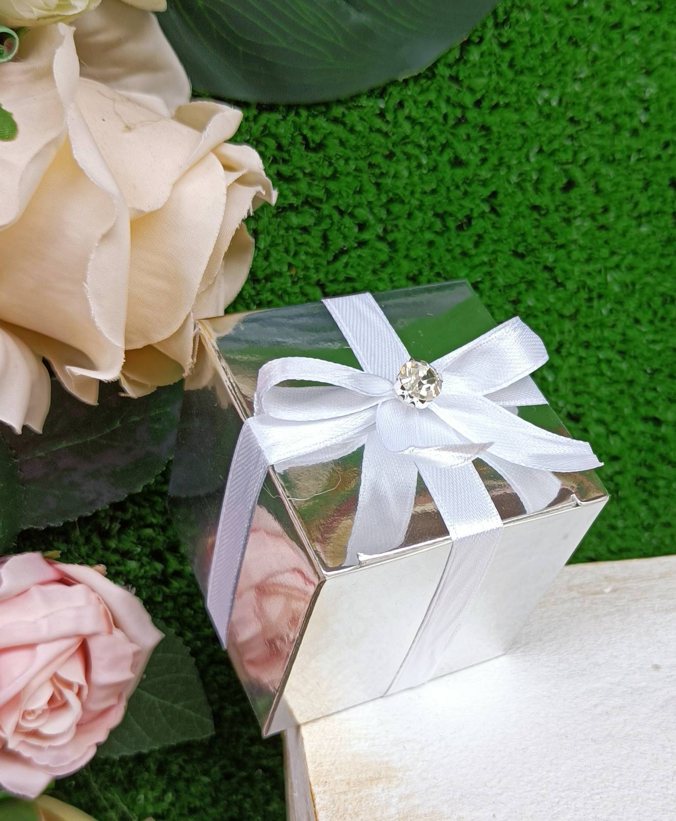 Ασημί μεταλλιζέ κουτί μπομπονιέρα γάμου