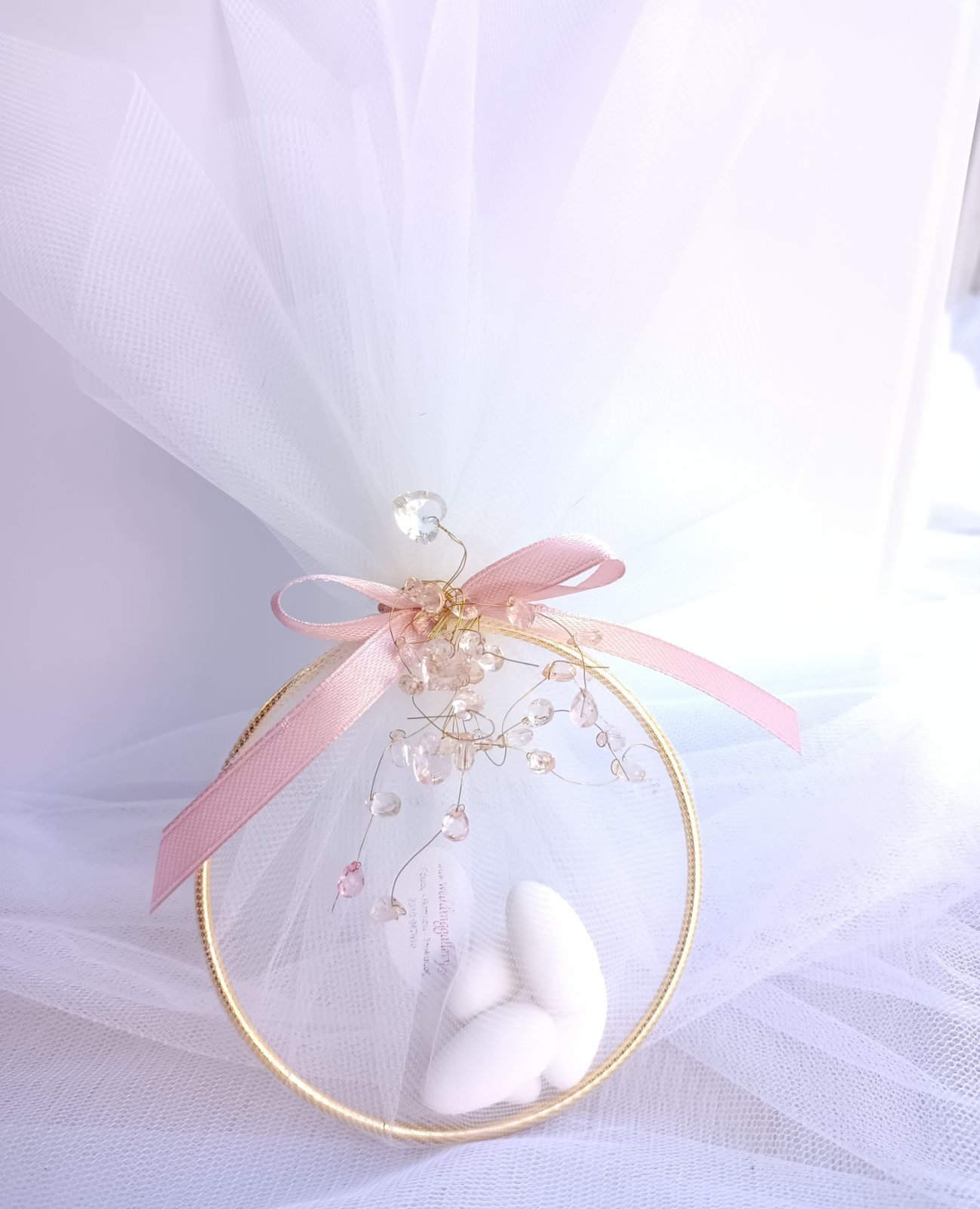 Μπομπονιέρα για το γάμο σας με χρυσό μεταλλικό κύκλο σε εντυπωσιακό δέσιμο και διακόσμηση κρυσταλλάκια