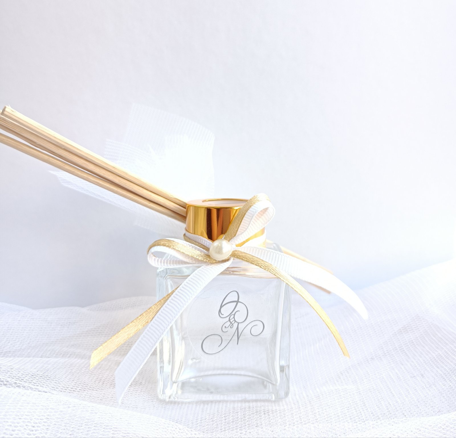 Μπομπονιέρα γάμου αρωματικό χώρου με μονογράμματα