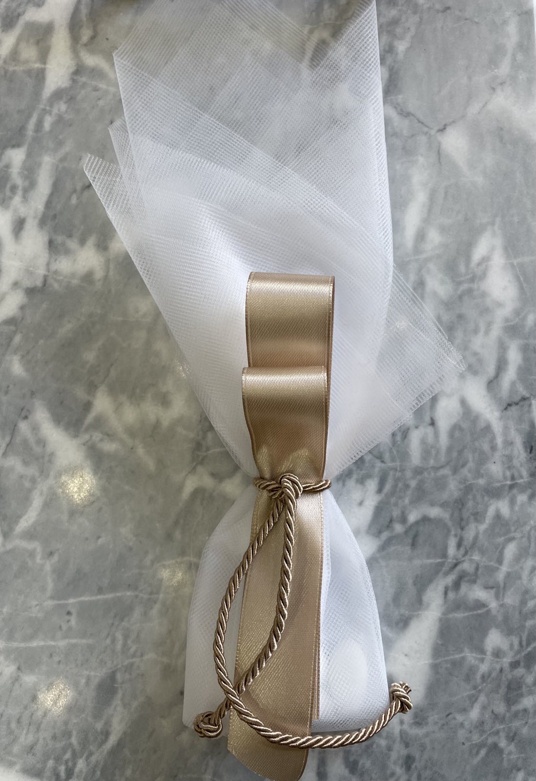 Μπομπονιέρες για γάμο με σατέν κορδέλα και κορδόνι σε χρώμα της άμμου