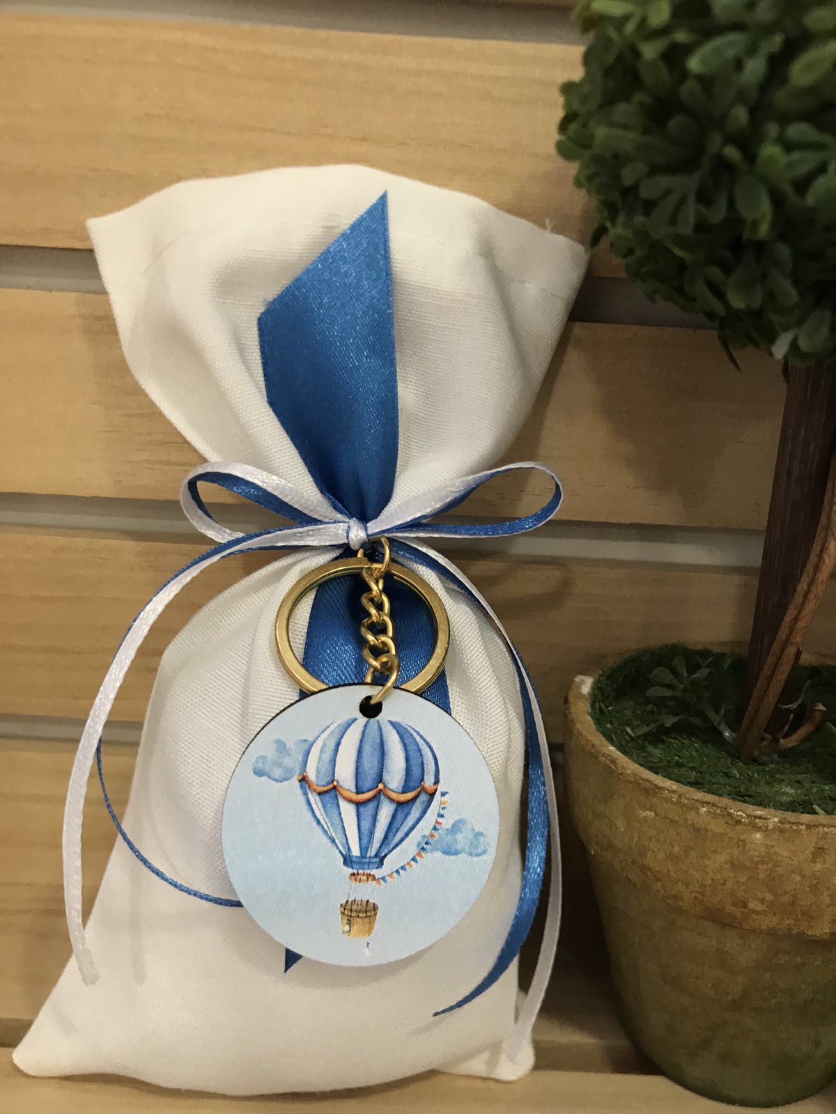 Μπομπονιέρα πουγκί με μπρελόκ αερόστατο. Οικονομική πρόταση για μπομπονιέρα βάπτισης!