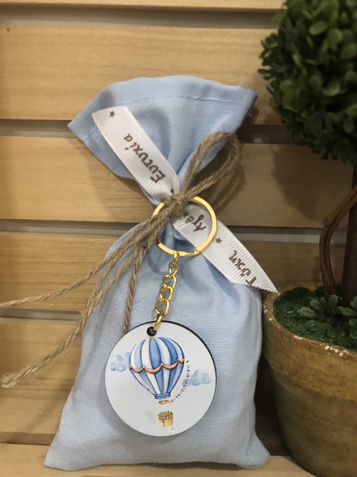 Μπομπονιέρα πουγκάκι με μπρελόκ αερόστατο
