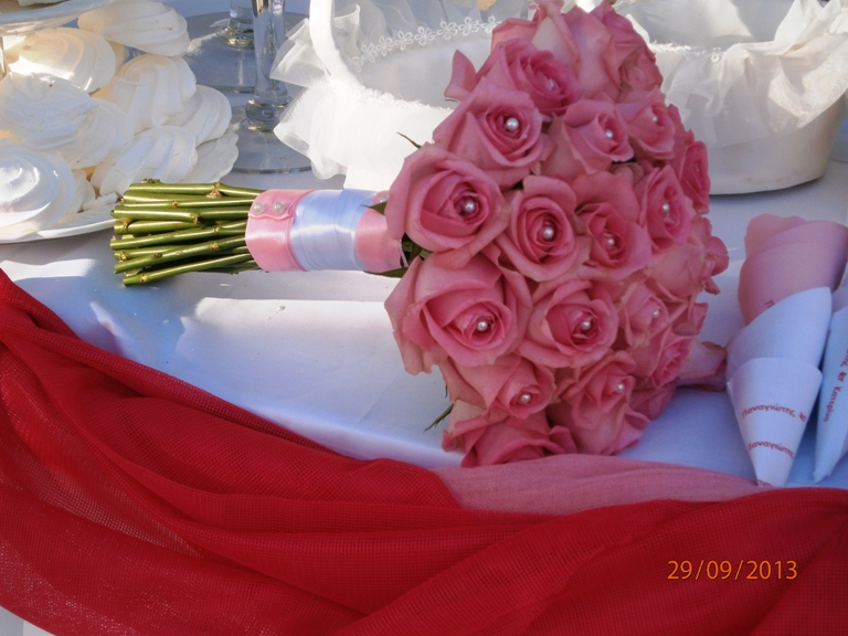 Ανθοδέσμη νύφης με ροζ τριαντάφυλλα