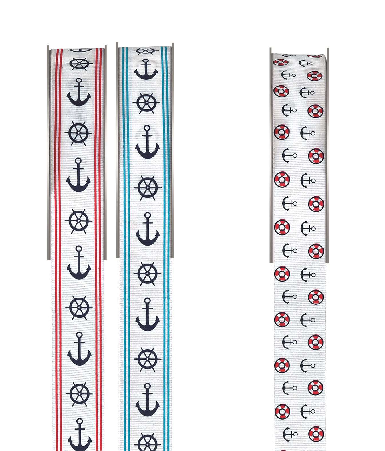 Κορδέλα για μπομπονιέρες βάπτισης γκρο με άγκυρες για να στολίσετε μπομπονιέρες βάπτισης. Κορδέλα σε συσκευασία 25mm και 25y