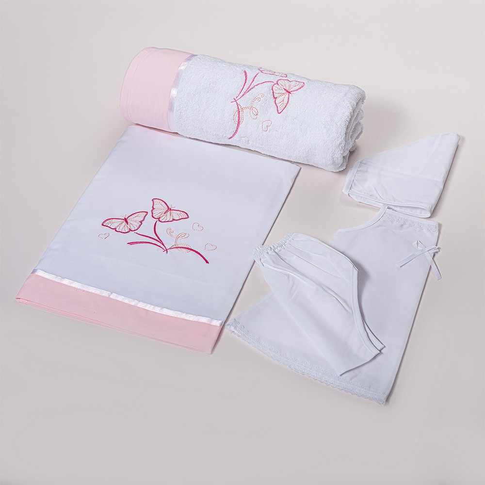 Λαδόπανα για κορίτσια πεταλούδα σε λευκό-ροζ.Όμορφο κέντημα με πεταλούδα στην πετσέτα και το λαδόπανο σε ροζ χρώμα και βαμβακερά εσώρουχα.