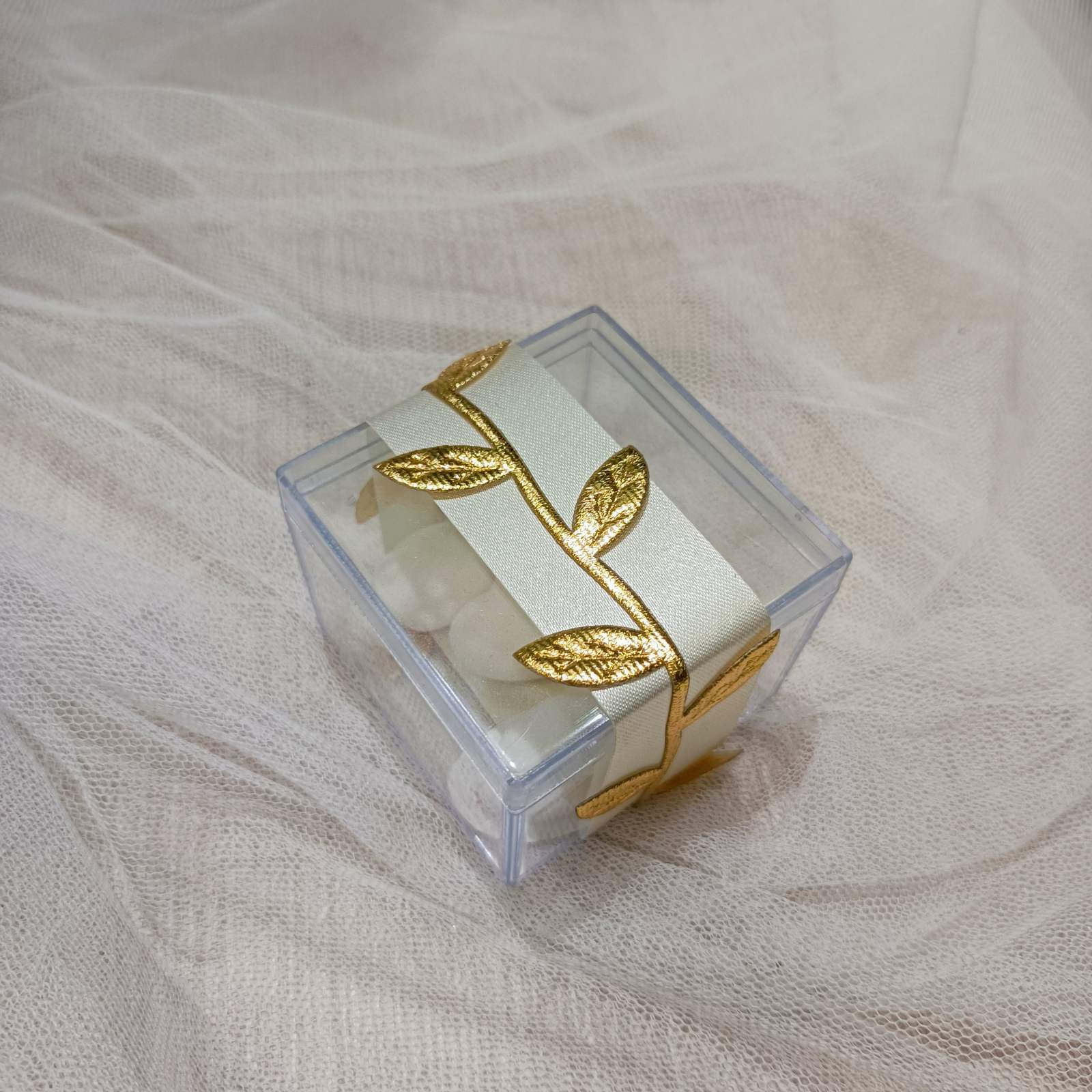 Μπομπονιέρα γάμου κουτί plexi με διακόσμηση κλαδάκι ελιάς