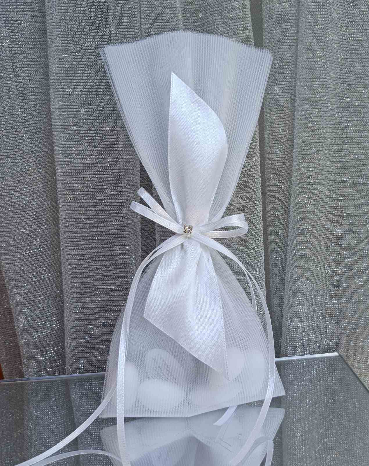 Οικονομική τούλινη μπομπονιέρα για το γάμο σας με λεπτομέρεια strass