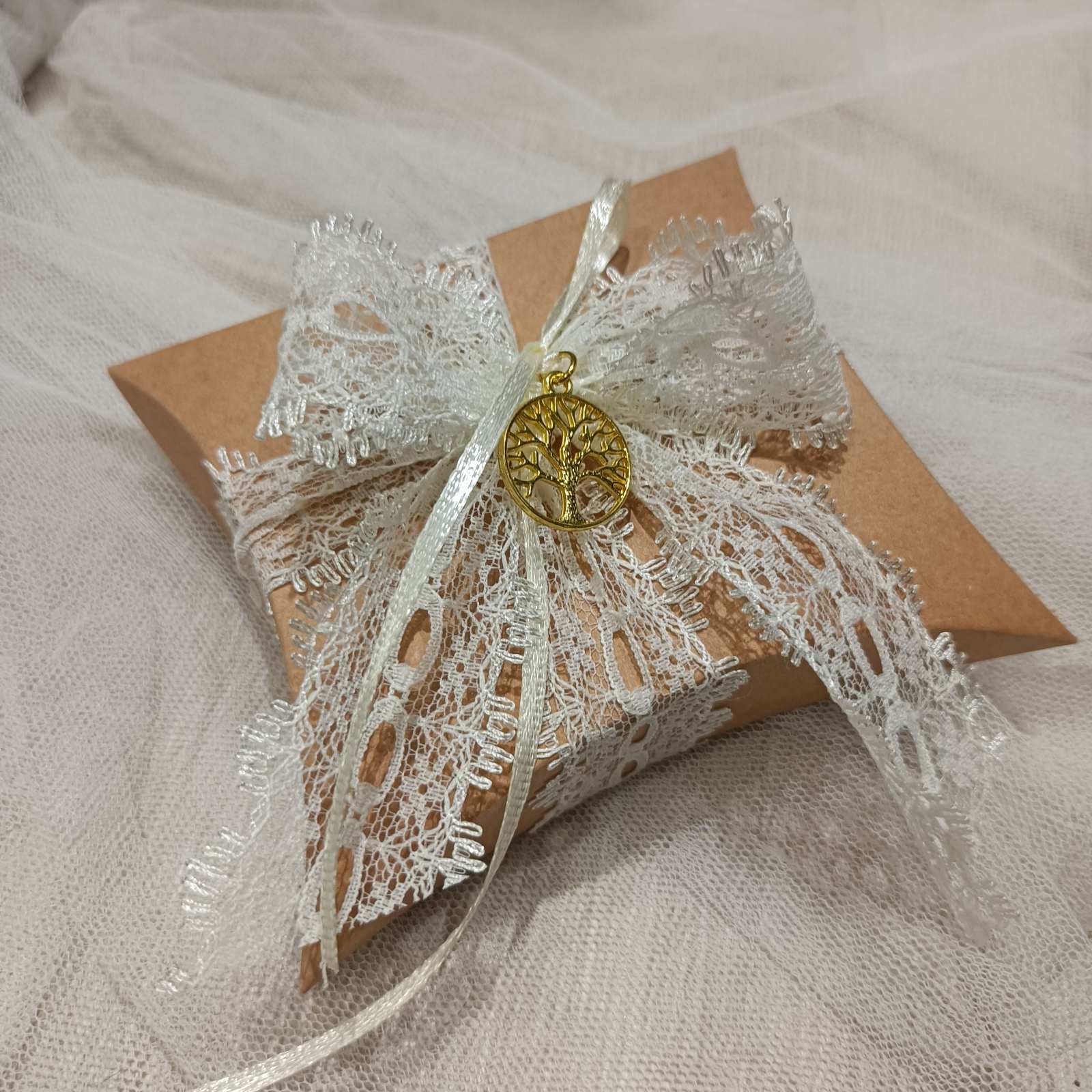 Μπομπονιέρα γάμου κουτάκι με δαντέλα και διακοσμητικό δέντρο ζωής