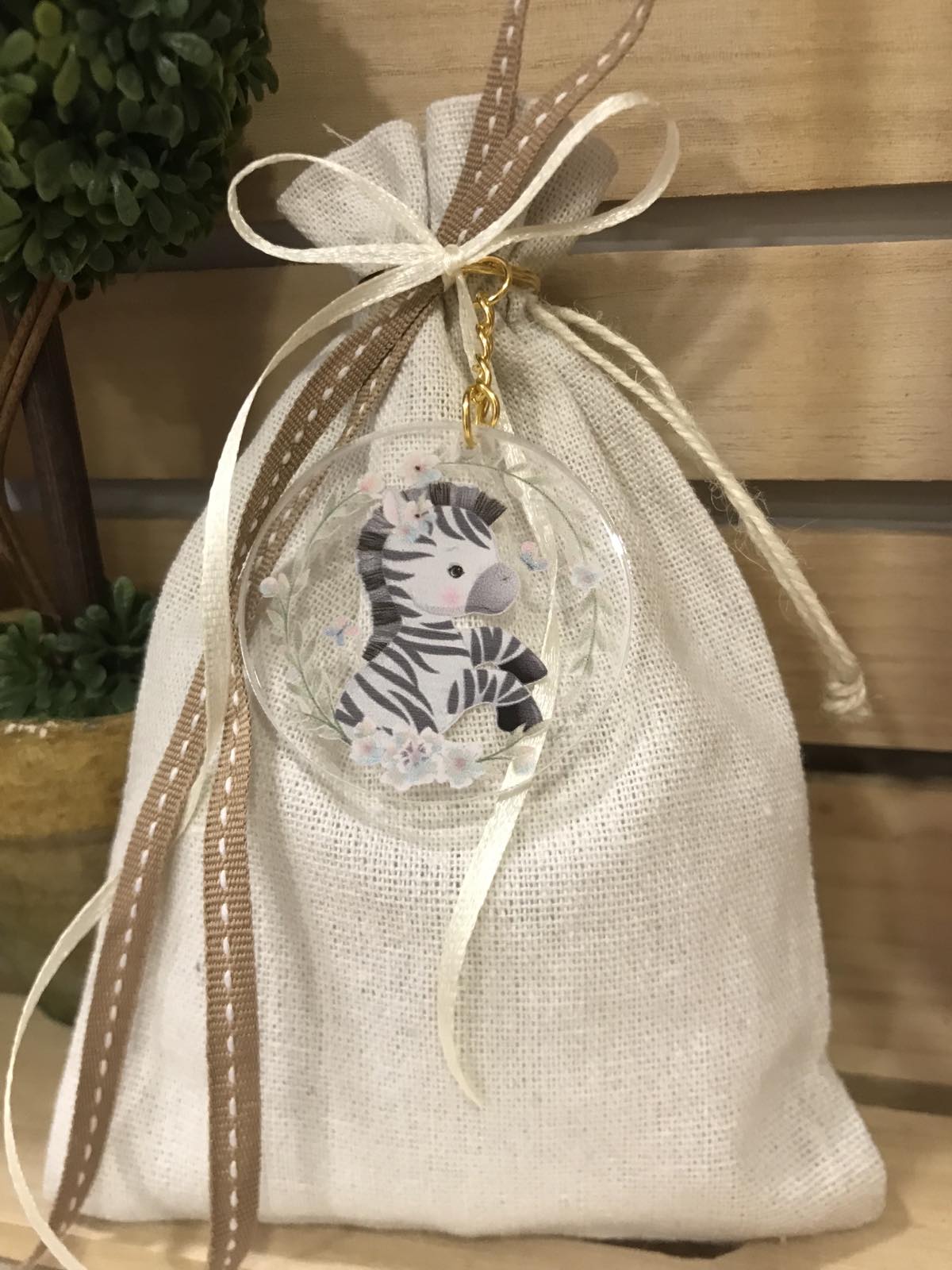 Μπομπονιέρα πουγκάκι με μπρελόκ plexiglass ζέβρα
