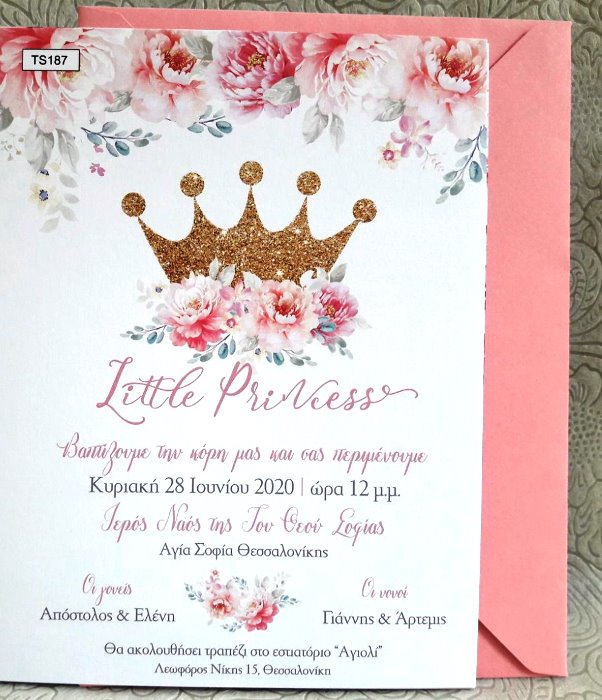 Προσκλητήριο βάπτισης με κορώνα σε μια όμορφη παράσταση προσκλητήριο με διάσταση 19Χ14 με φάκελο