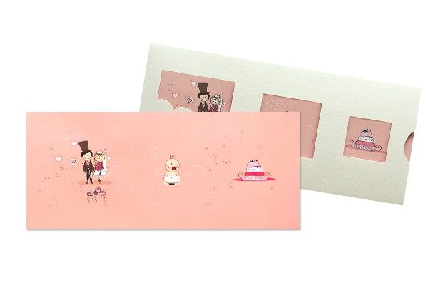 Προσκλητήριο για Γάμο & Βάπτιση W-SCB2008B, διακοσμημένο με ευχάριστο θέμα εκτύπωσης, σε ροζ φόντο, που περιγράφει το διπλό γεγονός του γάμου και της βάπτισης σας.