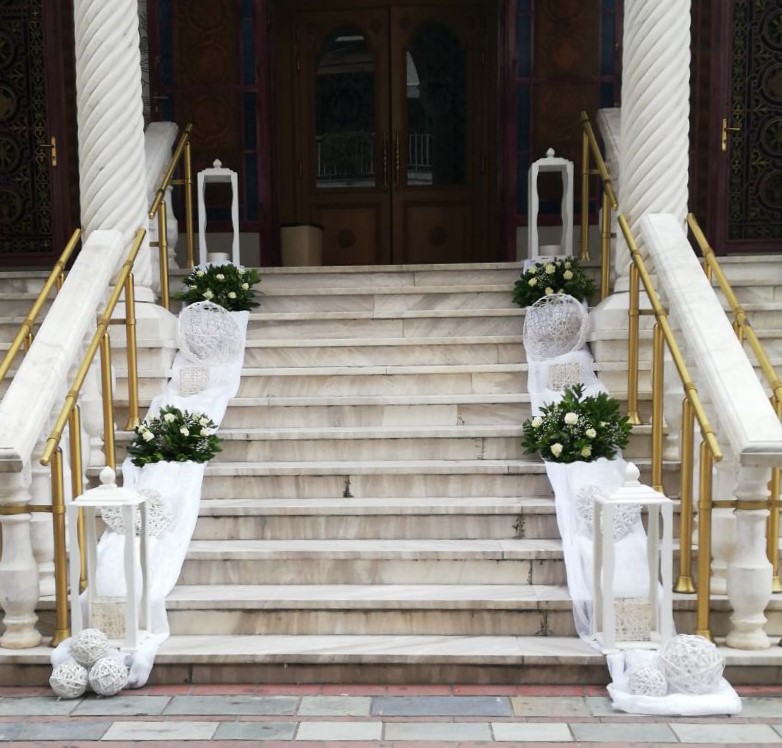 Διαδρομός στις σκάλες ή στην είδοδο της εκκλησίας δυνατότητα επιλογής με ανθοσυνθέσεις από φυσικά λουλούδια