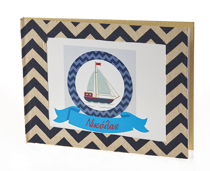 Βιβλίο ευχών βάπτισης με θέμα καράβι και διακόσμηση απο μπλε σεβρόν