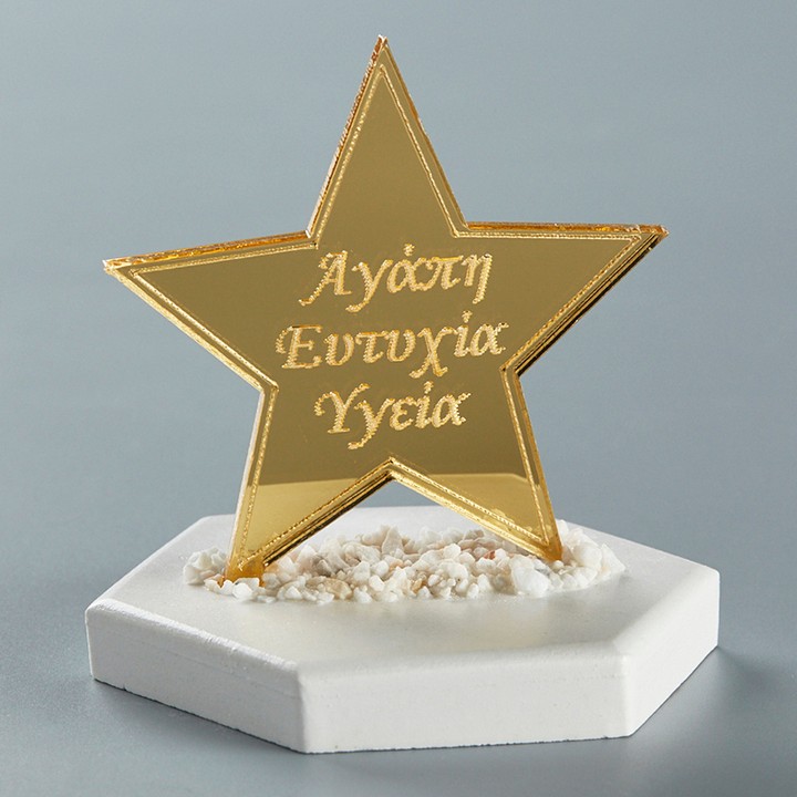 Μπομπονιέρα με διακοσμητικό χρυσό αστέρι με ευχές plexiglass. Μια υπέροχη μπομονιέρα ενθύμιο!